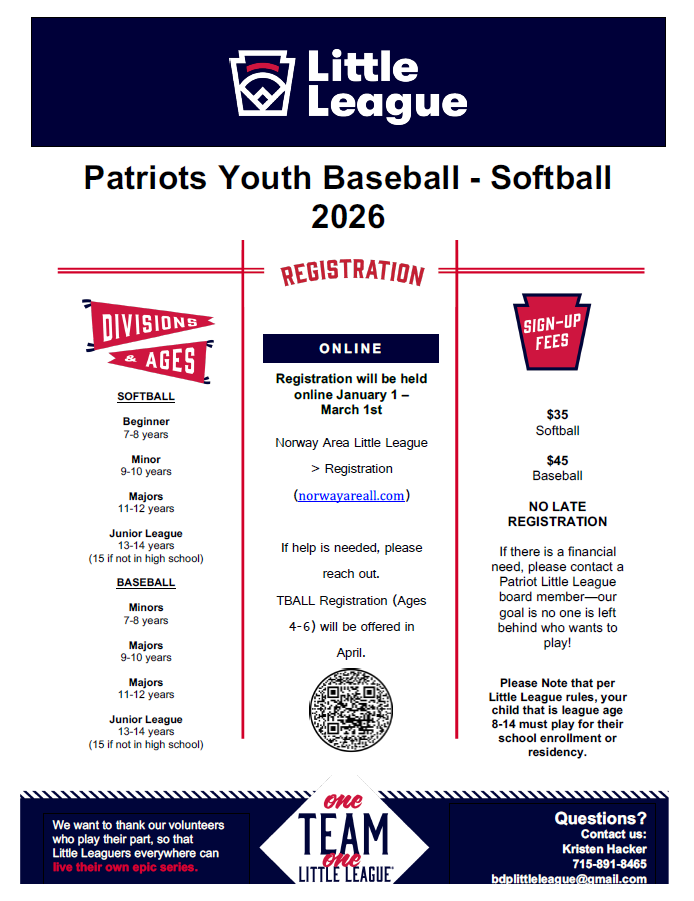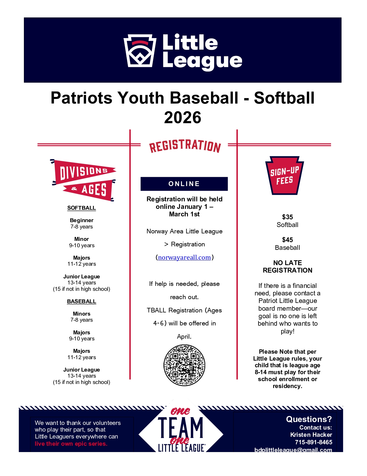 Sign Up are Open!!! Register online. https://www.norwayareall.com/
